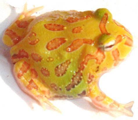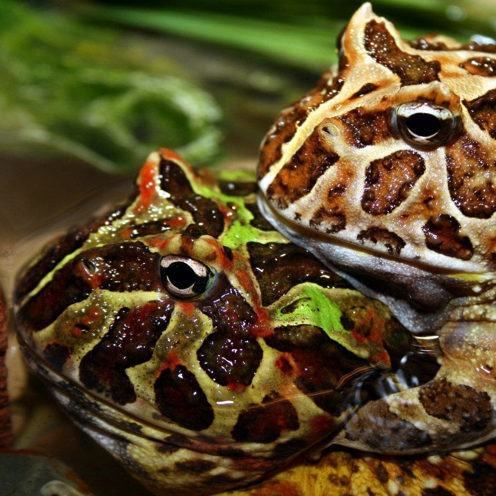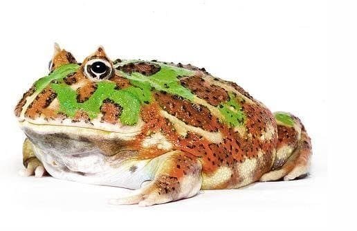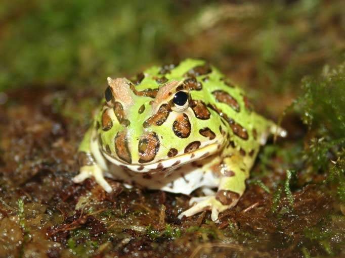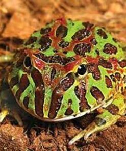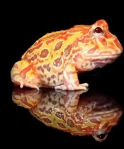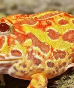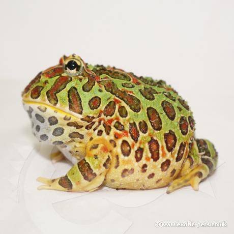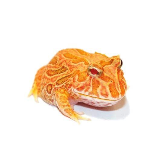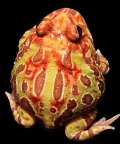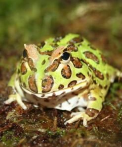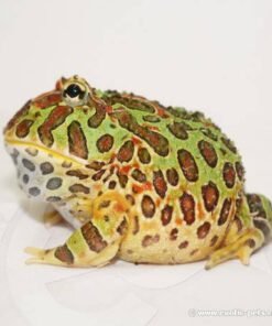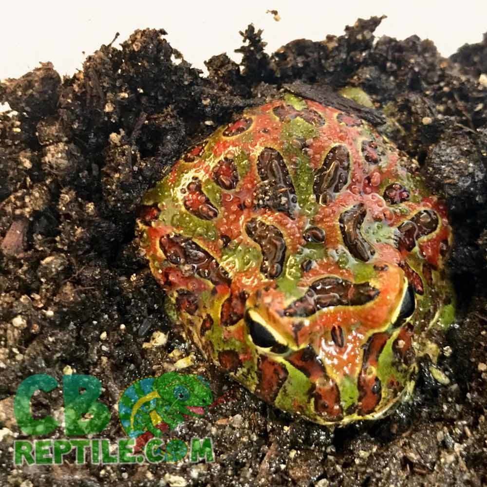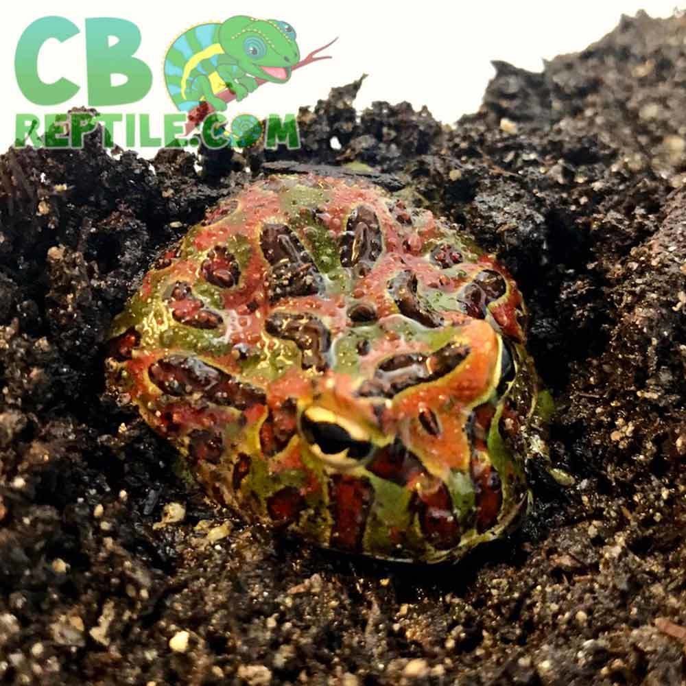 Pacman, or “Horned frogs for sale” come from the damp, humid forests of South America. Their name refers to the fact that the top of their head comes to a point over their eyes and looks like horns. They also have the nickname “Pac-Man Frog,” after the popular video game.
