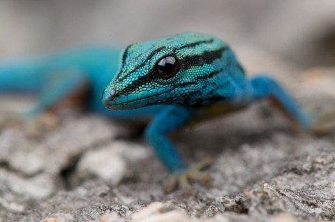 Electric Blue Cave geckos may be the most colorful lizard in the world, besides maybe Panther Chameleons for sale.  Male Electric Blue Cave Geckos, also known as the electric blue day gecko for sale are a vivid blue with the underside from the neck to tail as a bright orange. Female Electric Blue Cave Gecko for sale have colors in shades of olive, green and copper with blue overtones. Their stomach is a cream to a very pale orange color. Males have a solid to striped black throat that can puff in display. The female electric blue day gecko’s throat is never completely solid black.